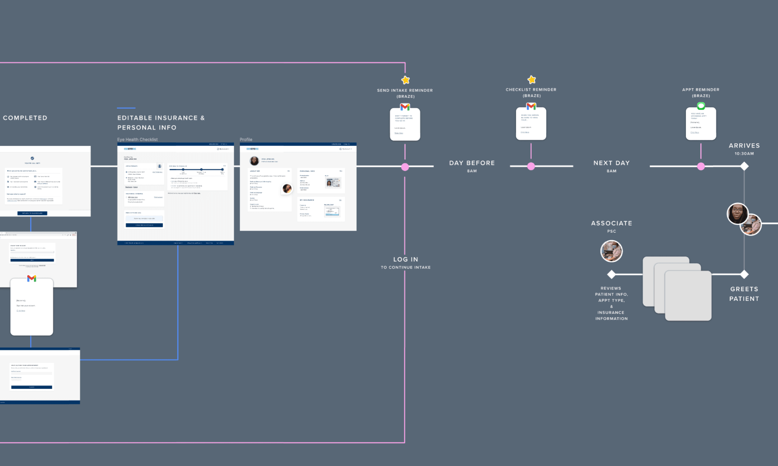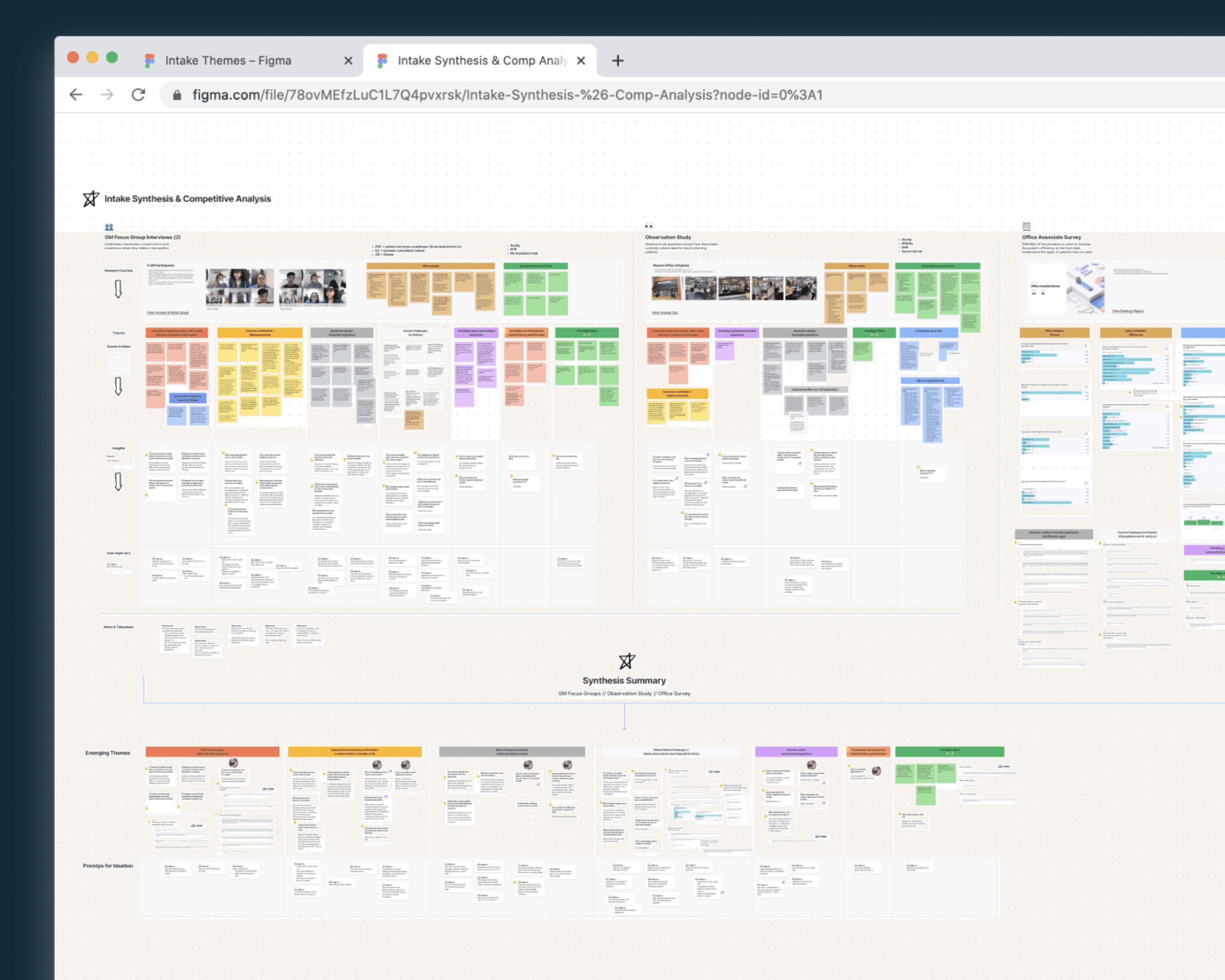 Insights were synthesized into thematic groupings with layered detail, allowing teams to zoom between strategy and execution. Competitive analysis was revisited periodically as the scope expanded to encompass the full intake experience, ensuring solutions remained aligned with both healthcare and retail expectations.